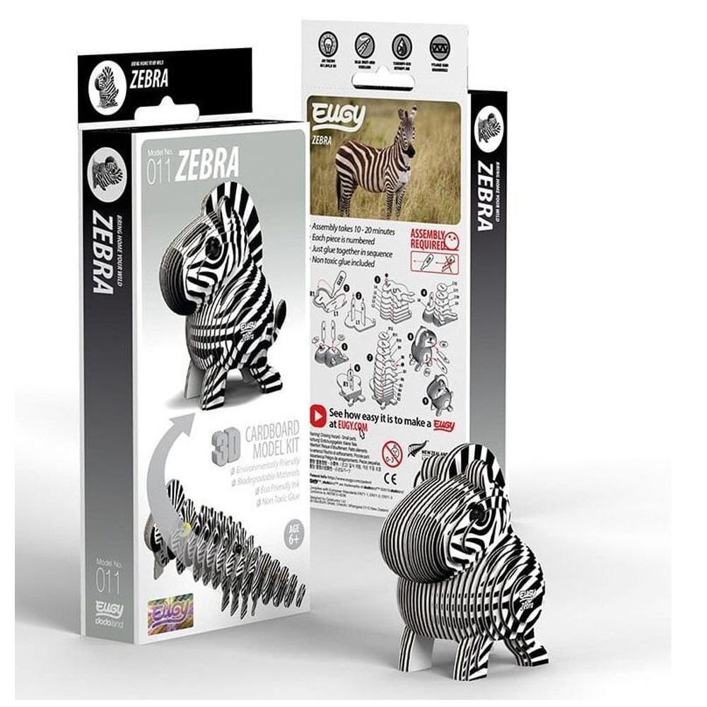 Eugy zaprojektowane w Nowej Zelandii są wykonane z przyjaznego dla środowiska kartonu pochodzącego z recyklingu i farby na bazie ryżu. Zestaw zawiera ponumerowane elementy układanki, nietoksyczny klej oraz instrukcję do zbudowania pasiastej zebry. Zbierz całą serię zwierząt, ptaków, dinozaurów i wiele innych. Dla dzieci w wieku 6 lat +.