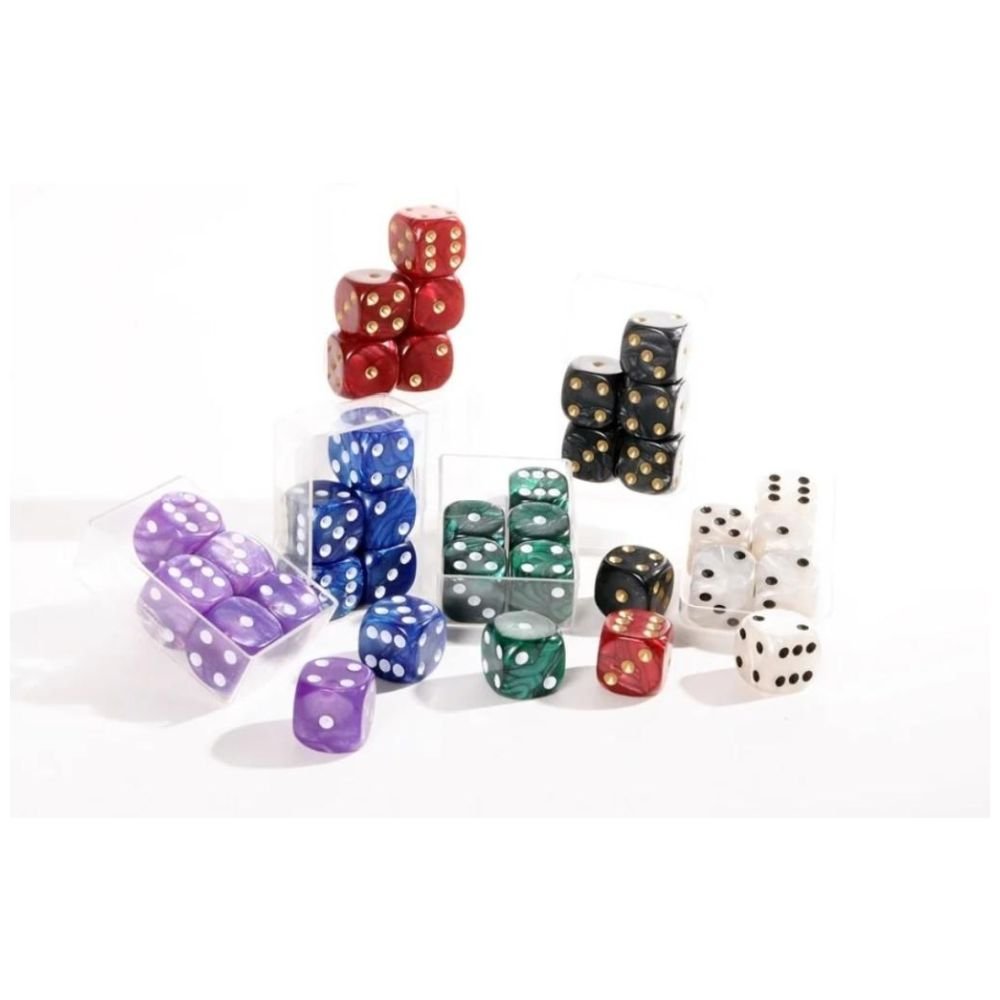 Zestaw 6 pudełek z 6 kostkami perłowymi.