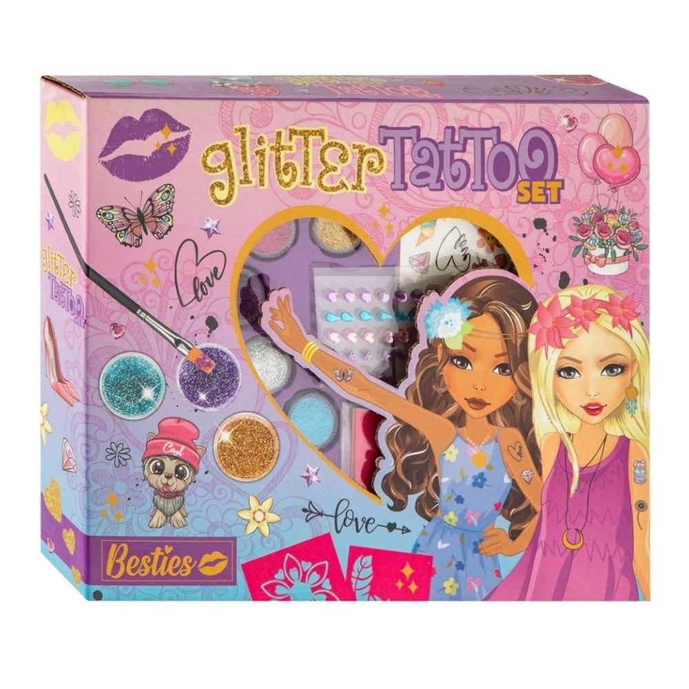 Zestaw do tatuażu brokatowego: szablon + 5 pojemniczków brokatu