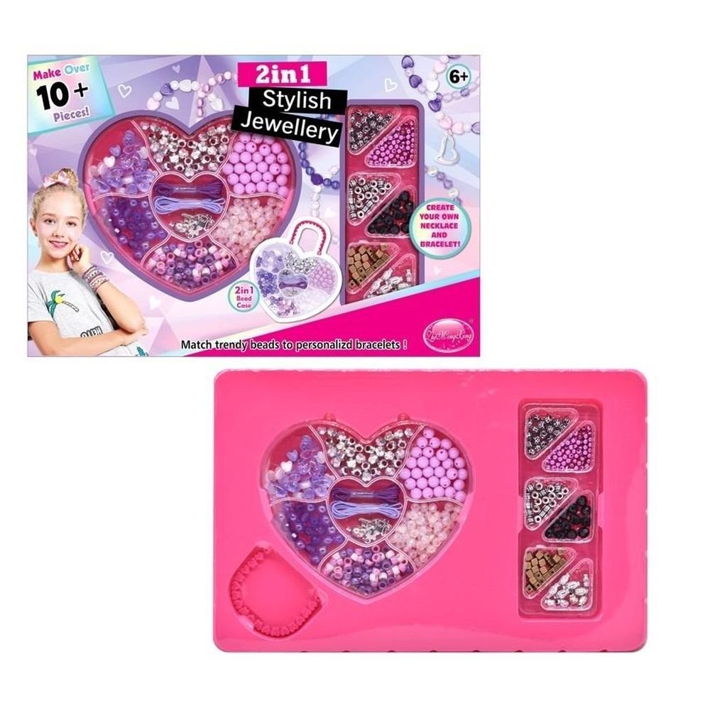 W zestawie: plastikowe pudełko w kształcie serca z uchwytem, 12 rodzajów koralików, 2 sznurki, 4 zawieszki, Pozostałe informacje: wym. opak. 30 x 19,8 x 3,5 cm,