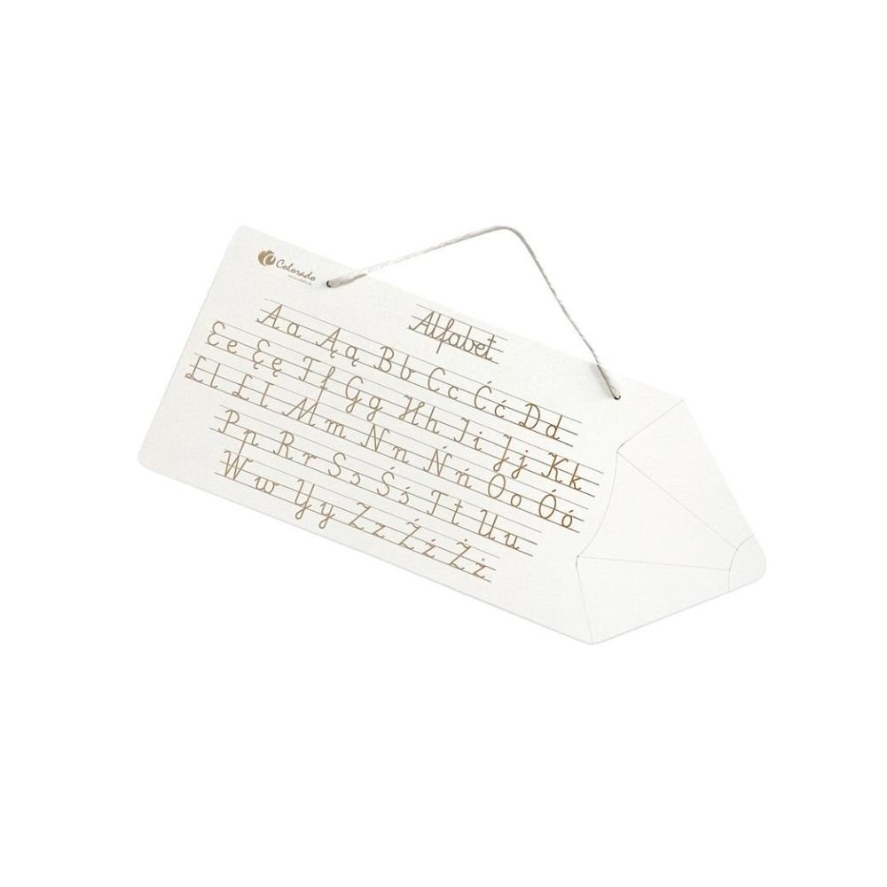 Prezentujemy drewniany alfabet do nauki pisania. Alfabet składa się tablicy na której wygrawerowane są wszystkie litery alfabetu (duże i małe).